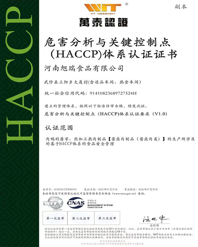公司累計(jì)投資1.5億元,建成現(xiàn)代化屠宰加工生產(chǎn)基地,引進(jìn)先進(jìn)成套生產(chǎn)線,達(dá)到國內(nèi)領(lǐng)先生產(chǎn)加工水平。具備年屠宰2000萬只肉鴨生產(chǎn)能力。擁有儲(chǔ)存量3000噸的智能化,數(shù)字化冷鏈倉儲(chǔ).產(chǎn)品分別通過ISO9001質(zhì)量管理體系、ISO22000食品安全管理體系和HACCP管理體系認(rèn)證,獲得綠色食品認(rèn)證和出口食品生產(chǎn)企業(yè)備案證明。