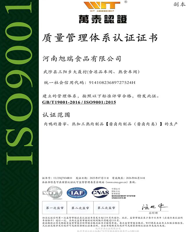 旭瑞集團(tuán)成立于2009年,致力于開展以鴨肉養(yǎng)殖全產(chǎn)業(yè)鏈為主導(dǎo)的戰(zhàn)略布局,已發(fā)展成為以畜禽飼料研發(fā)及加工,集畜禽繁育、養(yǎng)殖、屠宰加工及熟食生產(chǎn)于一體的完整產(chǎn)業(yè)鏈體系的集團(tuán)公司,擁有飼料研發(fā)、養(yǎng)殖屠宰、熟食生產(chǎn)三大核心板塊,旗下?lián)碛?家子公司,具備50萬噸飼料、1000萬只土鴨繁育、2000萬只肉鴨屠宰、2萬噸肉制品深加工及供應(yīng)鏈服務(wù)的產(chǎn)業(yè)規(guī)模。公司目前是農(nóng)業(yè)產(chǎn)業(yè)化國家重點(diǎn)龍頭企業(yè)、國家高新技術(shù)企業(yè)、農(nóng)業(yè)部飼料質(zhì)量安全管理示范企業(yè)、河南省企業(yè)技術(shù)中心、河南省工程技術(shù)研究中心。
